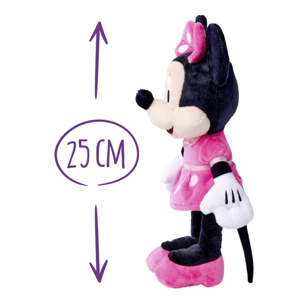 El Peluche Minnie Rosa 25 cm de Simba Toys es una adorable representación de Minnie Mouse, luciendo un encantador vestido rosa.