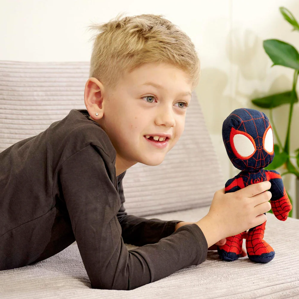 El valiente Miles Morales, la versión más moderna de Spider-Man, llega en un increíble peluche de 25 cm de Simba Toys. Diseñado con detalles auténticos y materiales de alta calidad, este peluche brilla en la oscuridad, añadiendo un toque especial a cualquier aventura nocturna.