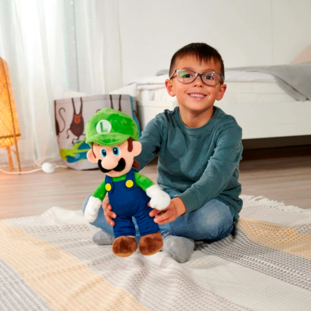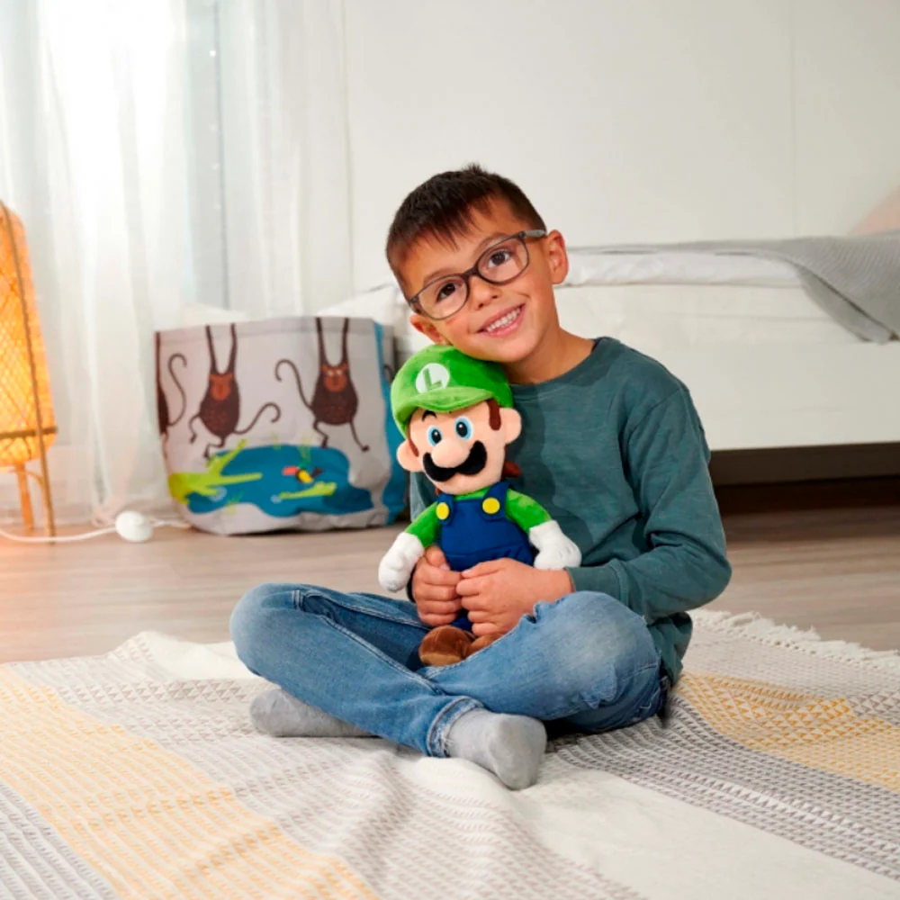 El Peluche Luigi 30 cm de Simba Toys es una fiel representación del emblemático personaje de Nintendo, Luigi, hermano de Super Mario.